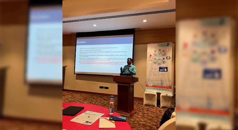 Expert Speaker was Dr. V. Gowthaman, PhD. from Namakkal presented the importance of disease control strategies for respiratory diseases. He opined that minimizing predisposing factors of various diseases should be prioritized. Indian layer farmers are facing egg production drop which need comprehensive approach for investigation. Infectious Coryza due to variant B serovars, Velogenic Viscerotropic ND caused by either Genotype VII or Genotype XIII, LPAI and variant IBV serotypes are mainly responsible for respiratory diseases in poultry. Better quality vaccines with good vaccination schedule should be the approach towards controlling diseases in poultry.
